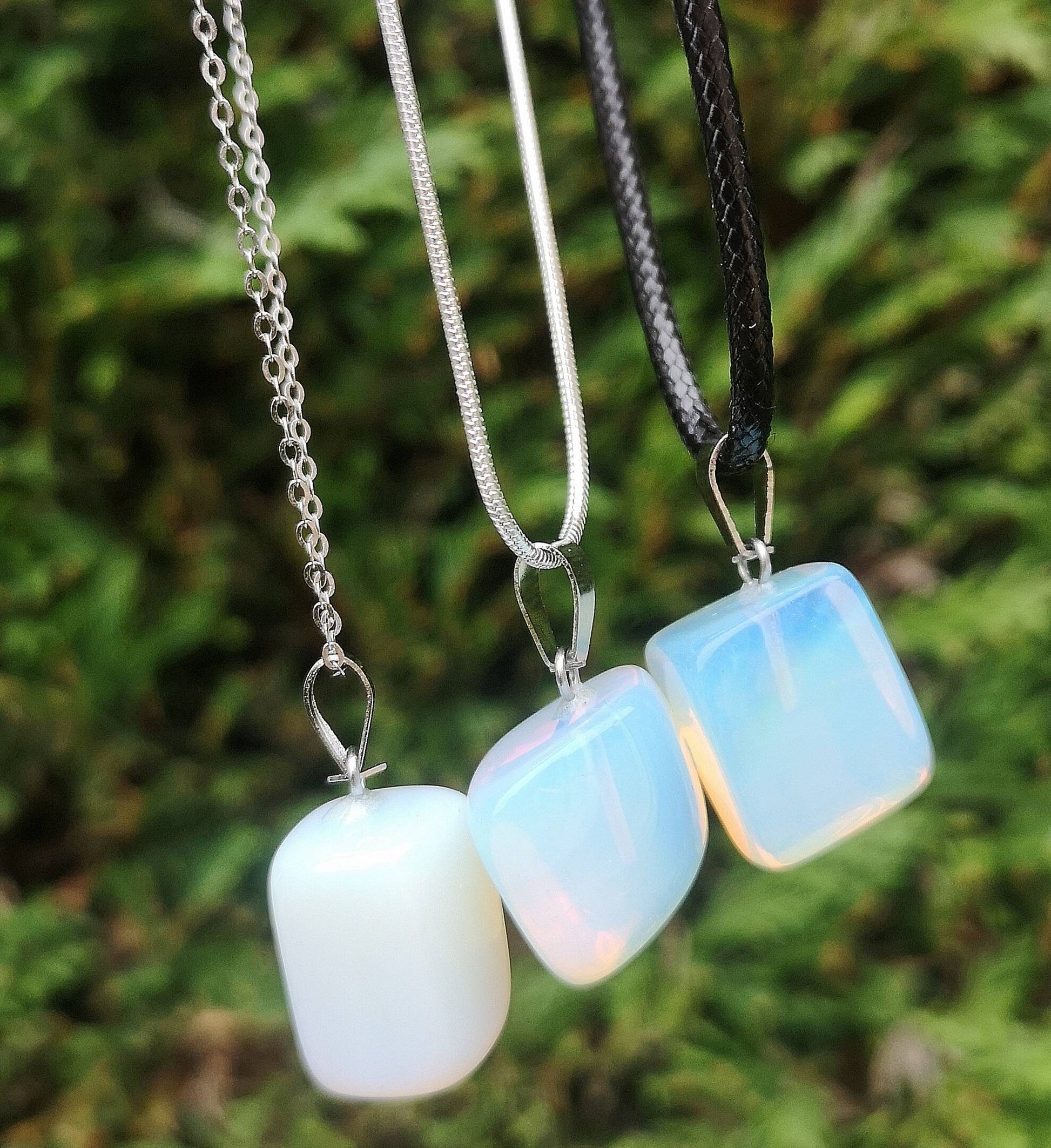 Opalite Crystal necklace. Genuine Healing Gemstone necklace on silver chain or black cord 18"