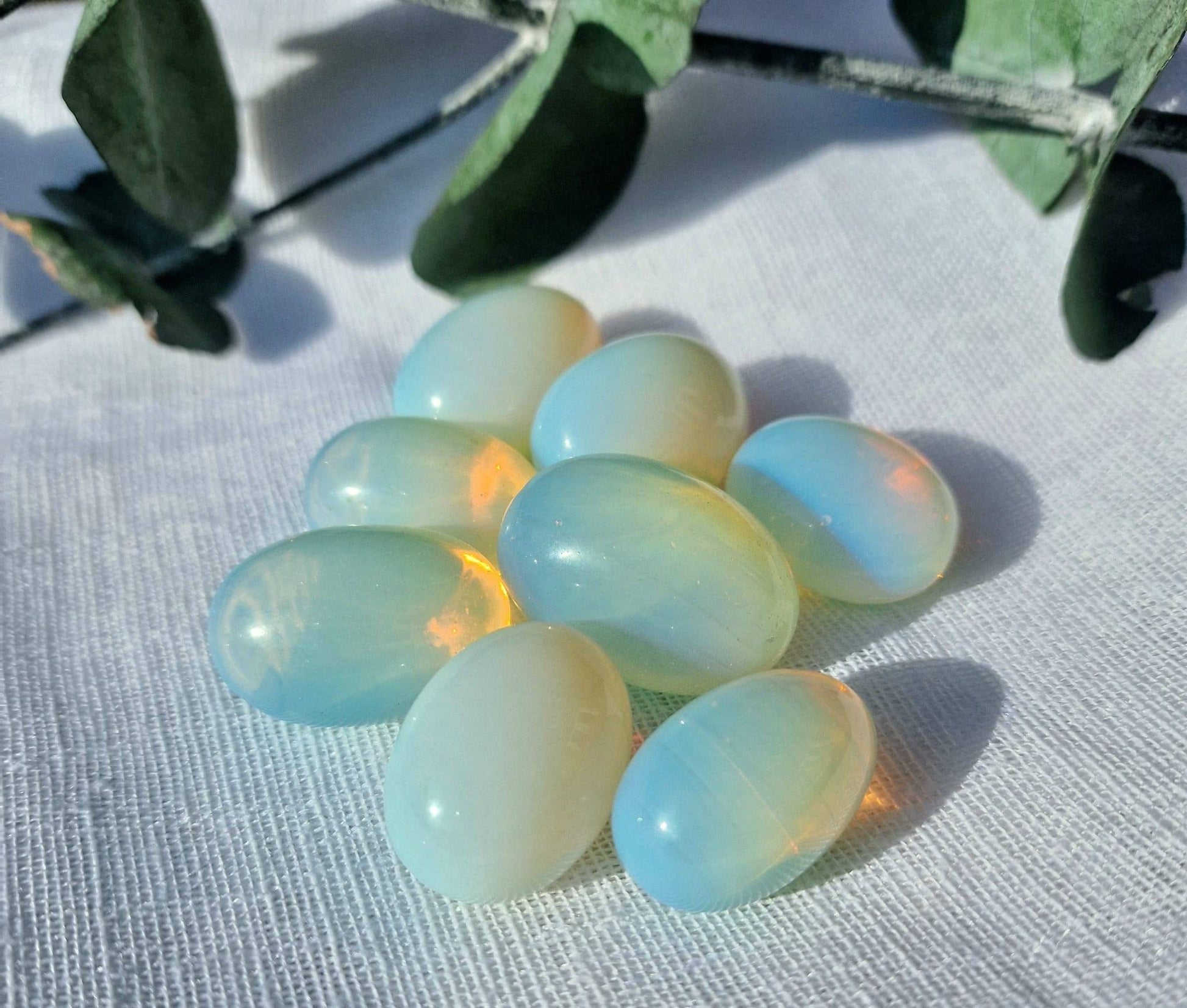 Each piece is a high quality opalite tumble stone as seen in the photos. Large size. The price is for 1 piece that I will intuitively choose for you.