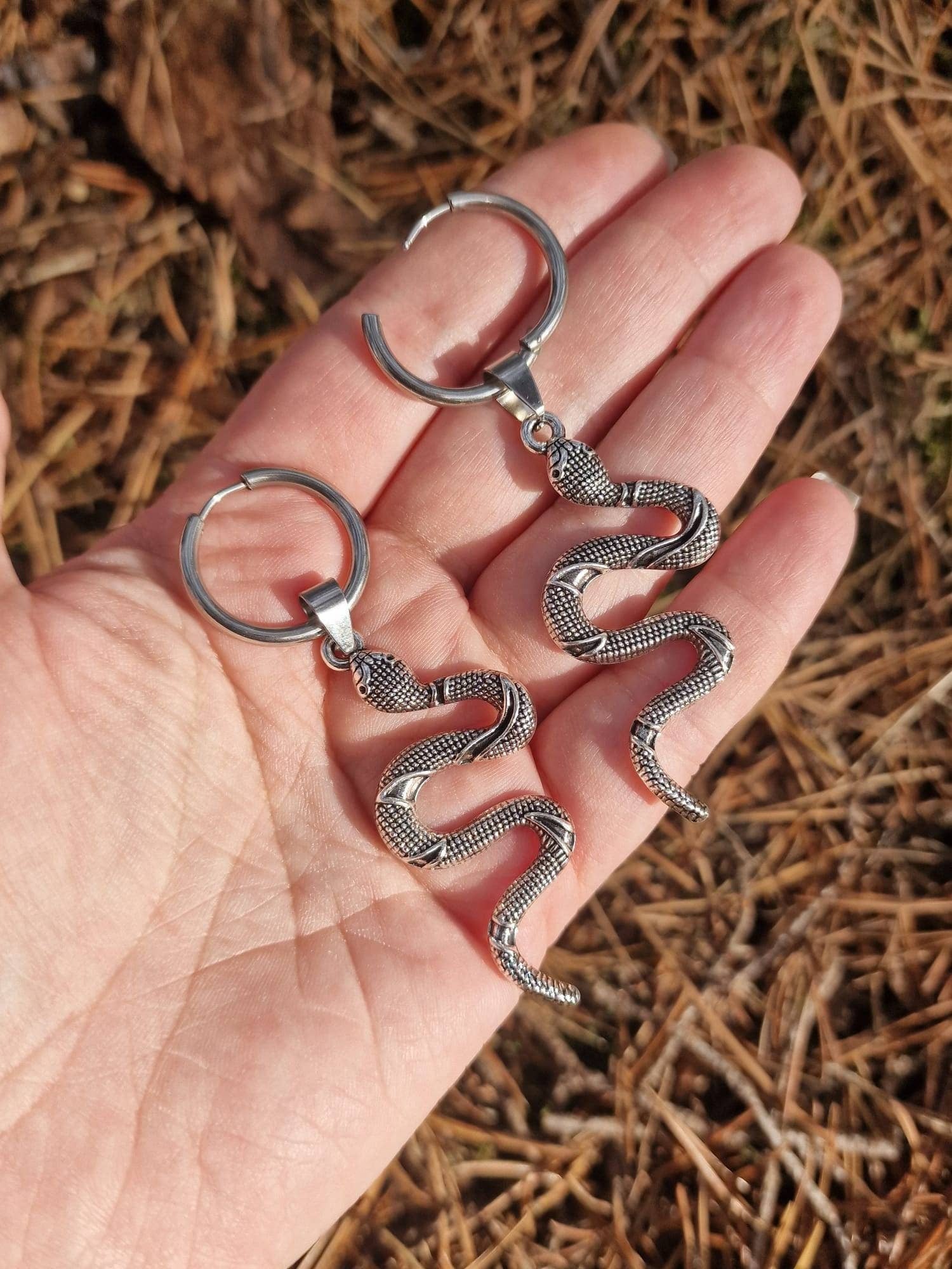 Made with strong surgical steel hoops. The snake measures 52 x 25mm these are perfect for customising your boots! 🐍