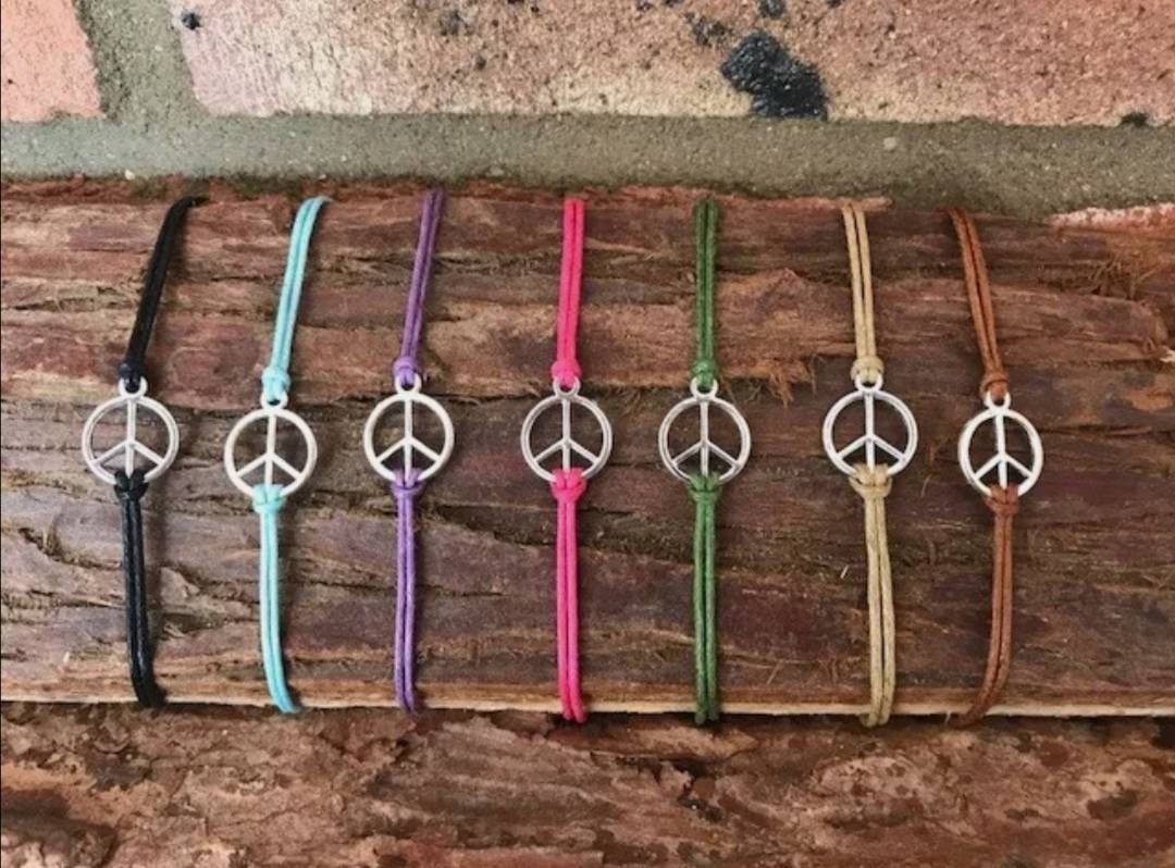 PEACE Cord Bracelet. Festival Hippy Style Bracelet Stacking Hippie Boho Adjustable Black pink Green Blue Brown Purple Peace Yoga