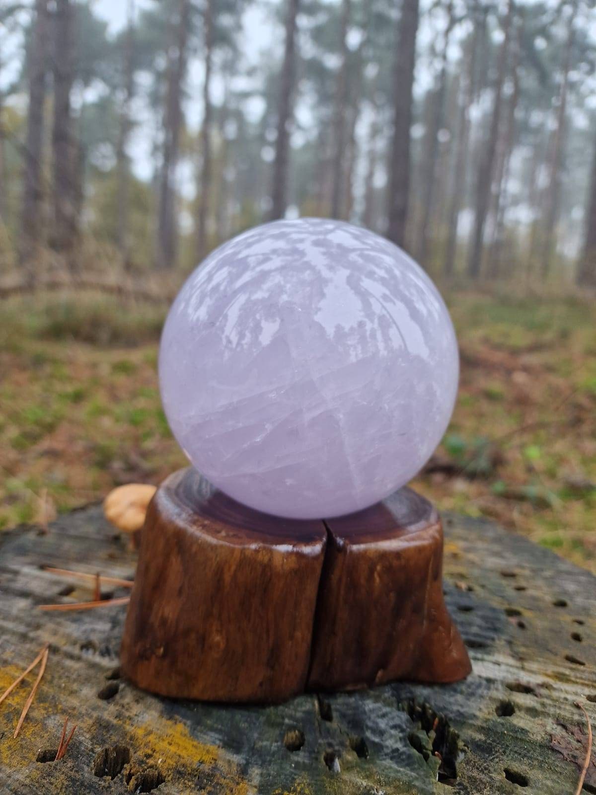 Truelly the most beautiful blue rose quartz sphere we've ever seen 😍 she's 1.36kg in weight with a diameter of 96mm. The quality is of the highest grade and she even has a strong star flash on 2 of her sides which you can see in the video.