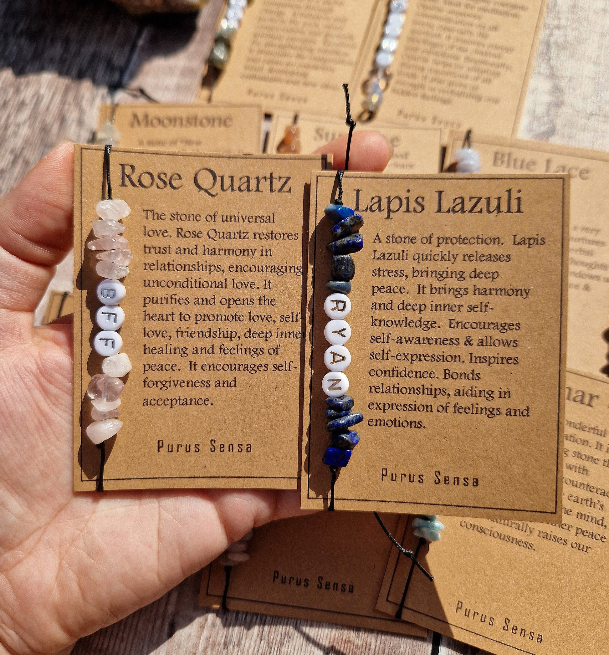 simply choose your crystal and let me know the name you would like on the bracelet and I'll do the rest 💚
