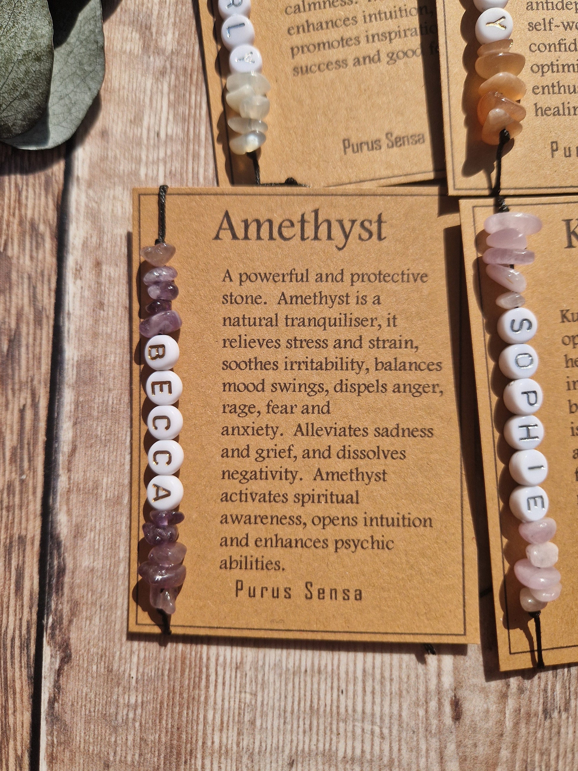 Personalised crystal bracelet. Gemstone chip bracelet. Personalised bracelet. Name bracelet. Healing bracelet for him / for her.