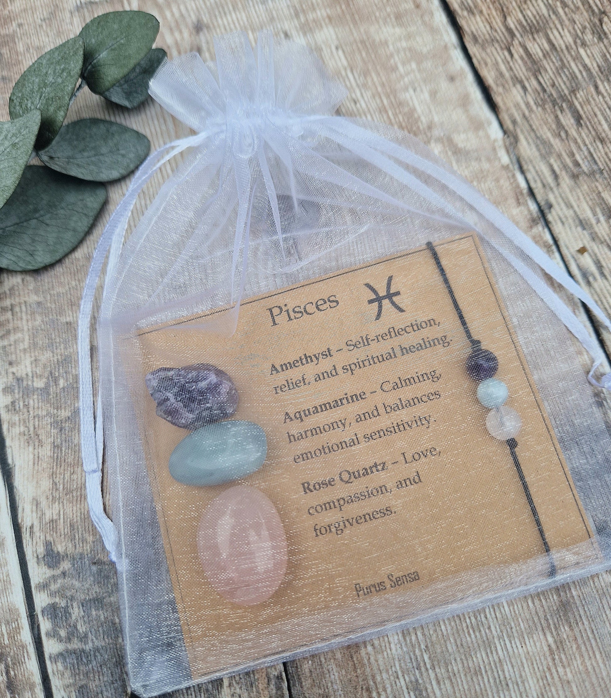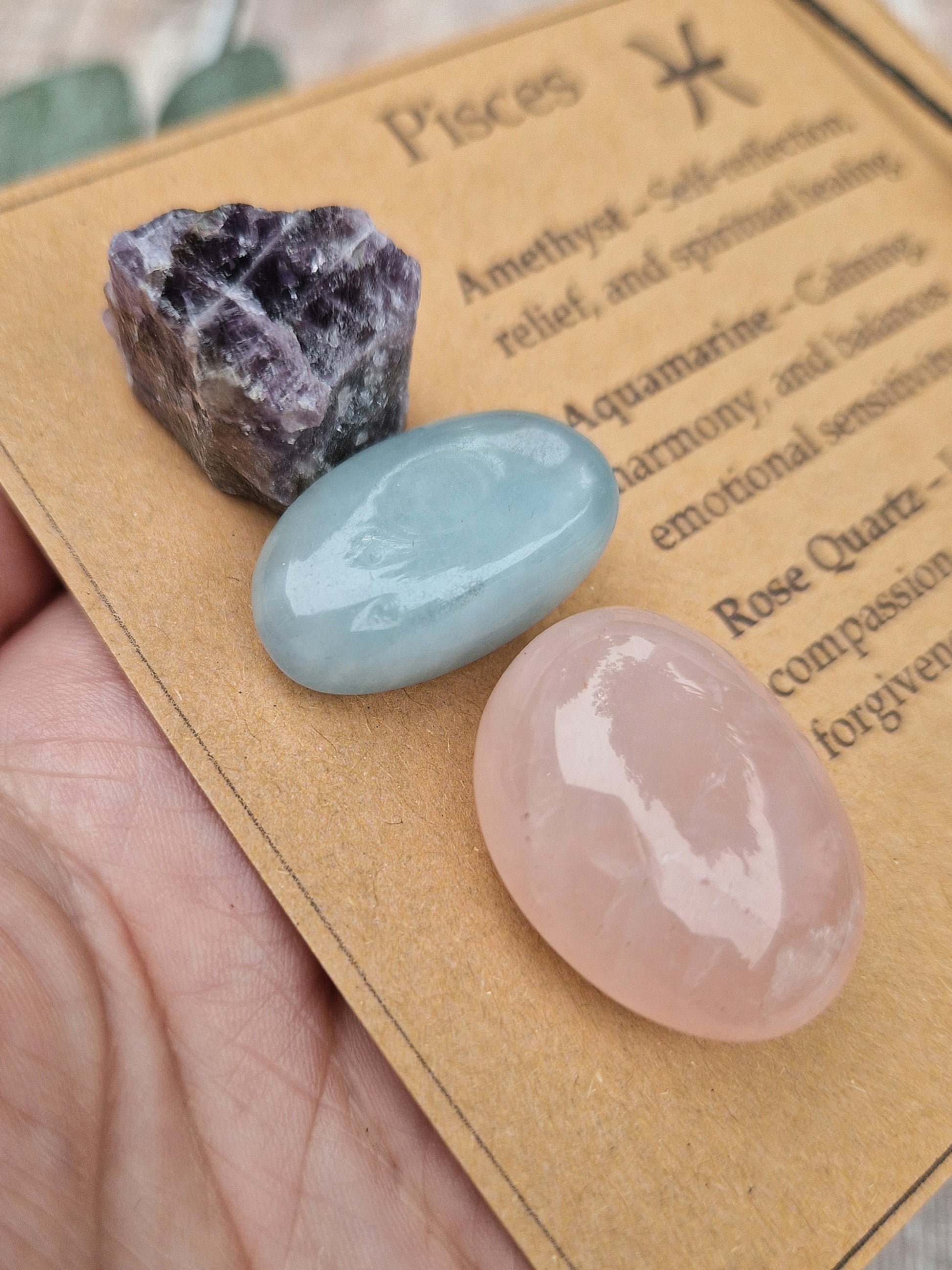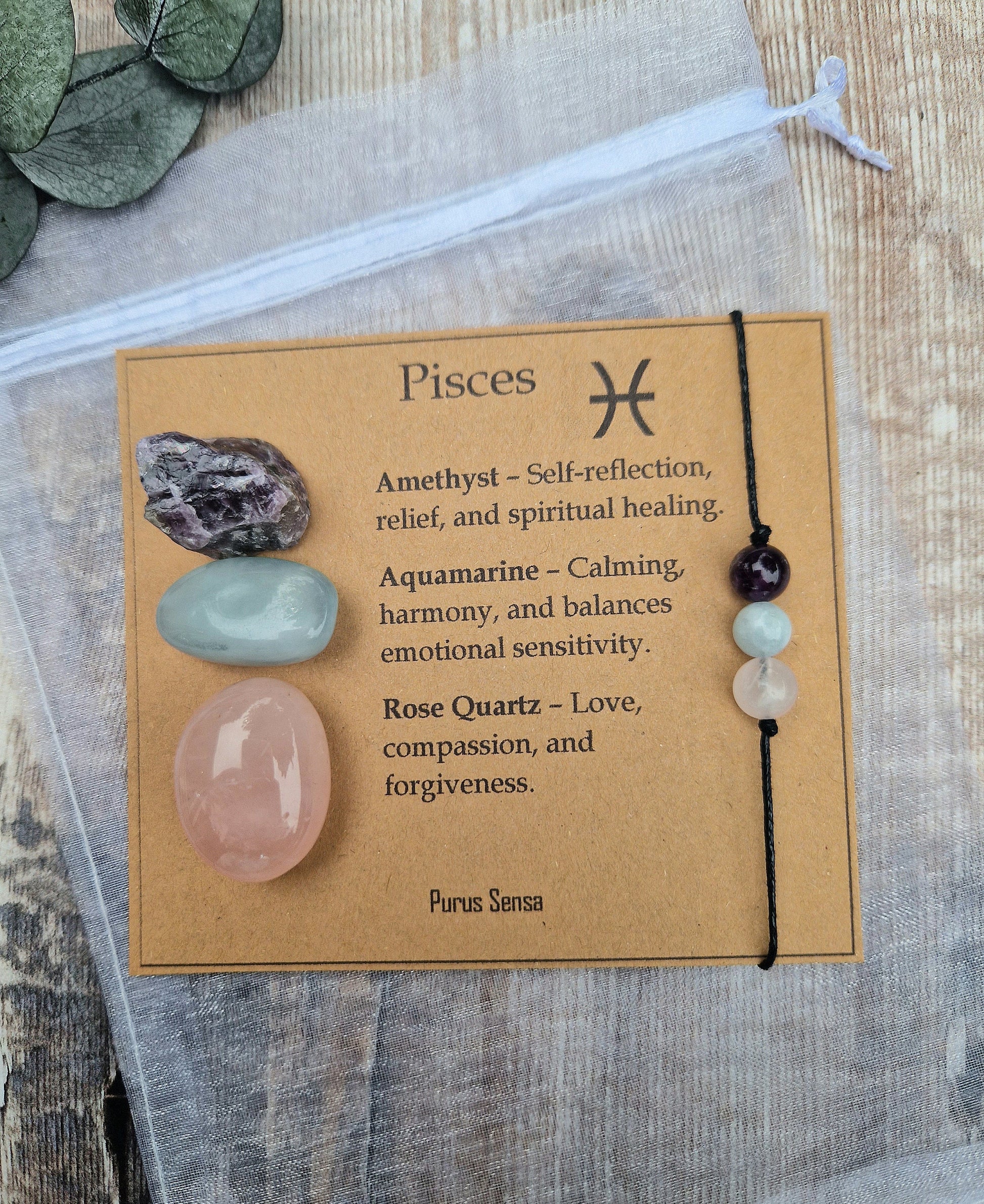 PISCES crystal set. Pisces gift. Crystal gift for Pisces. Zodiac crystal set on a descriptive card. Pisces bracelet and crystal set.