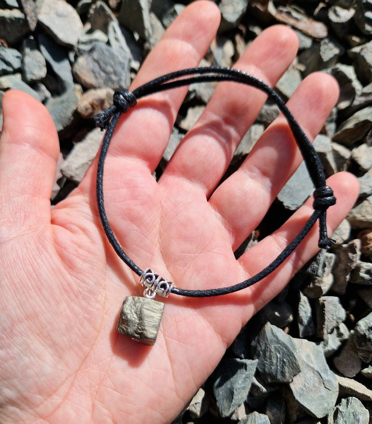 Pyrite anklet. Pyrite ankle bracelet. Adjustable cord. Crystal anklet. For abundance, good luck and success