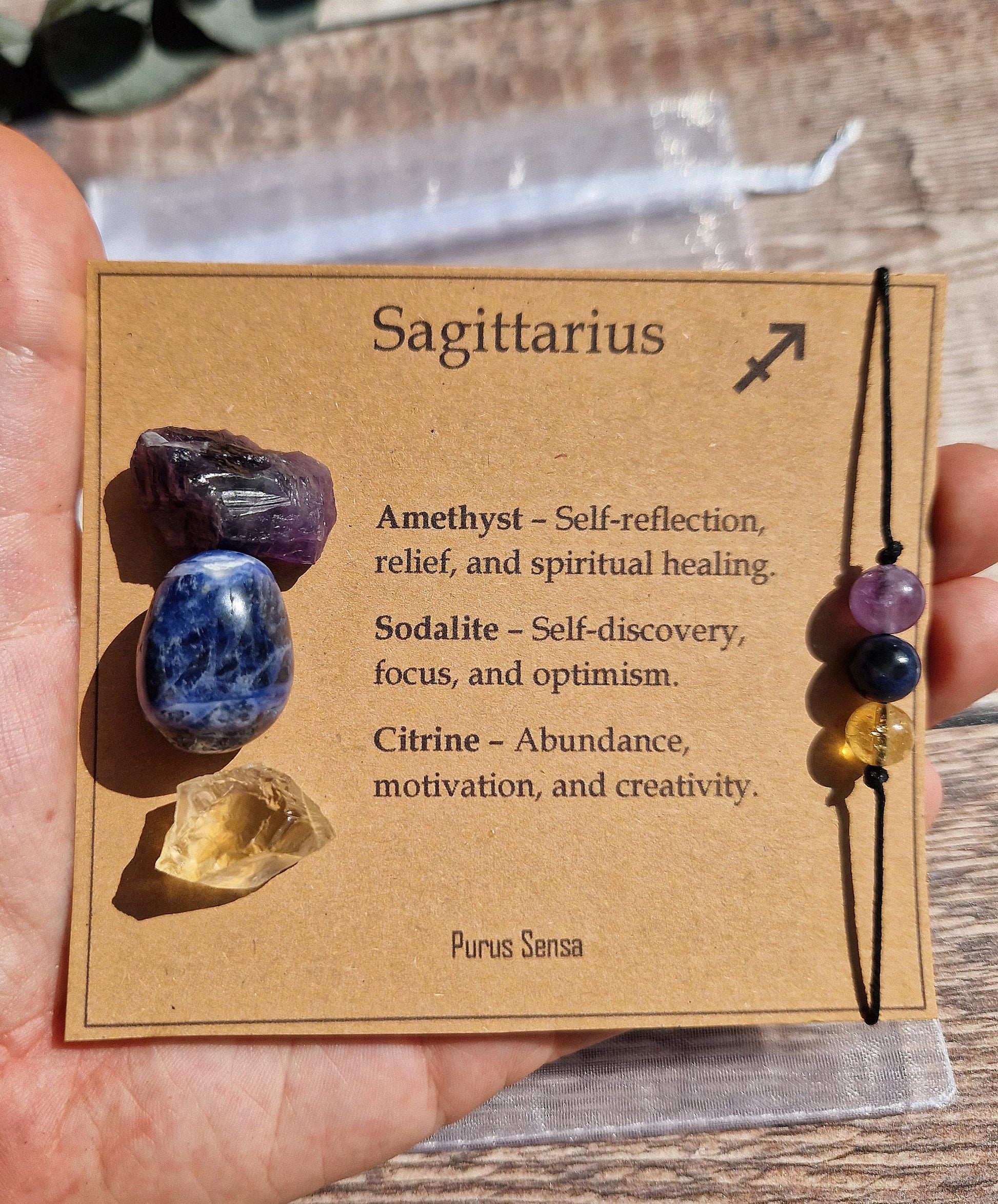 Sagittarius crystal set. Saggitarius gift. Crystals for sagittarius . Zodiac crystals on a descriptive card. bracelet and crystal set.