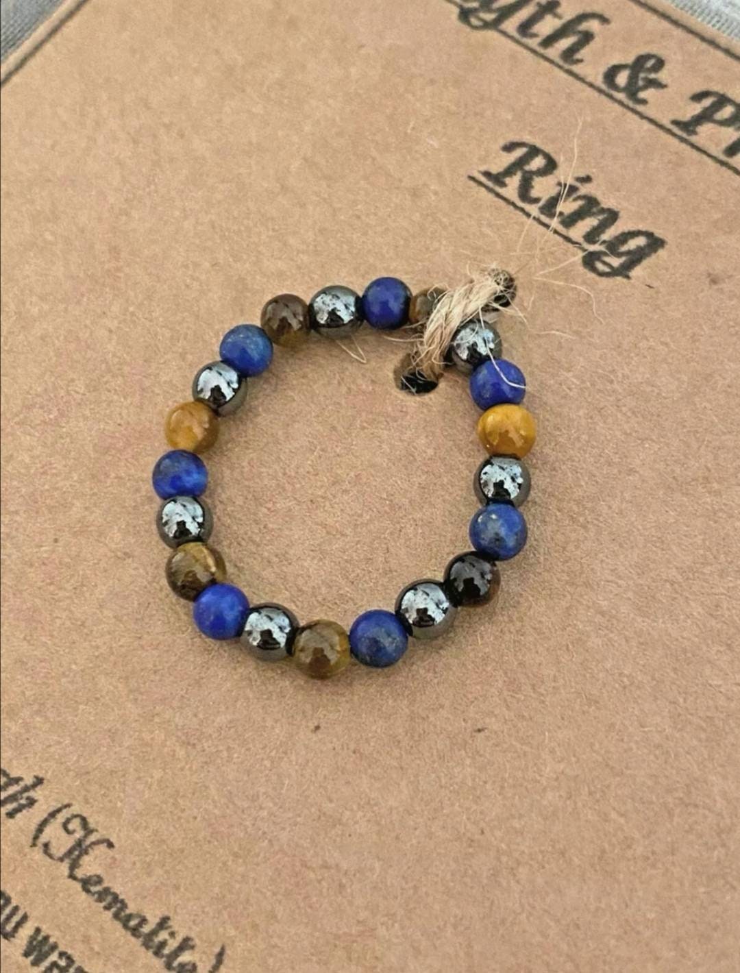 Strength Protection Gemstone Ring Stacking Healing Crystal Ring Hematite Lapis Lazuli Tiger Eye Reiki Hippy Hippie Beaded Gift Card