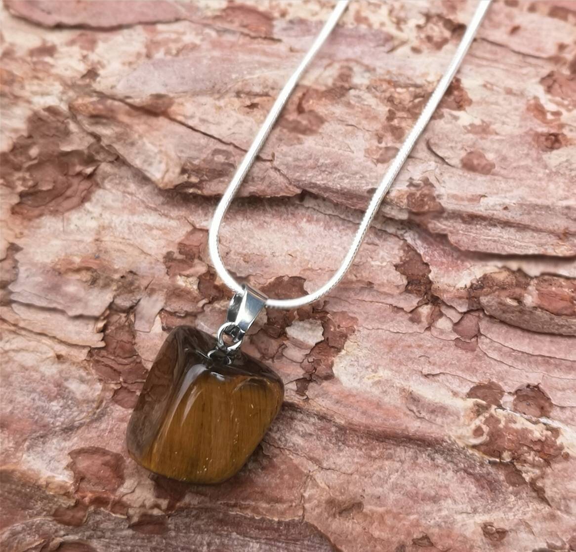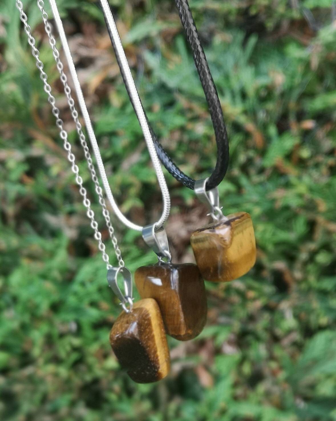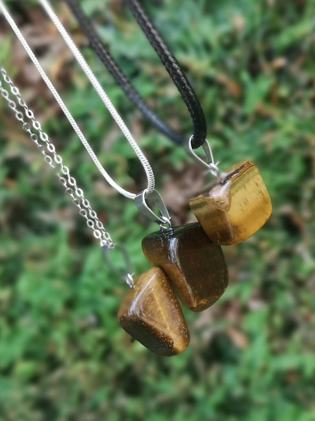 Tiger Eye Crystal Necklace. Healing gemstone necklace. Protection good luck Crystal on silver or black cord