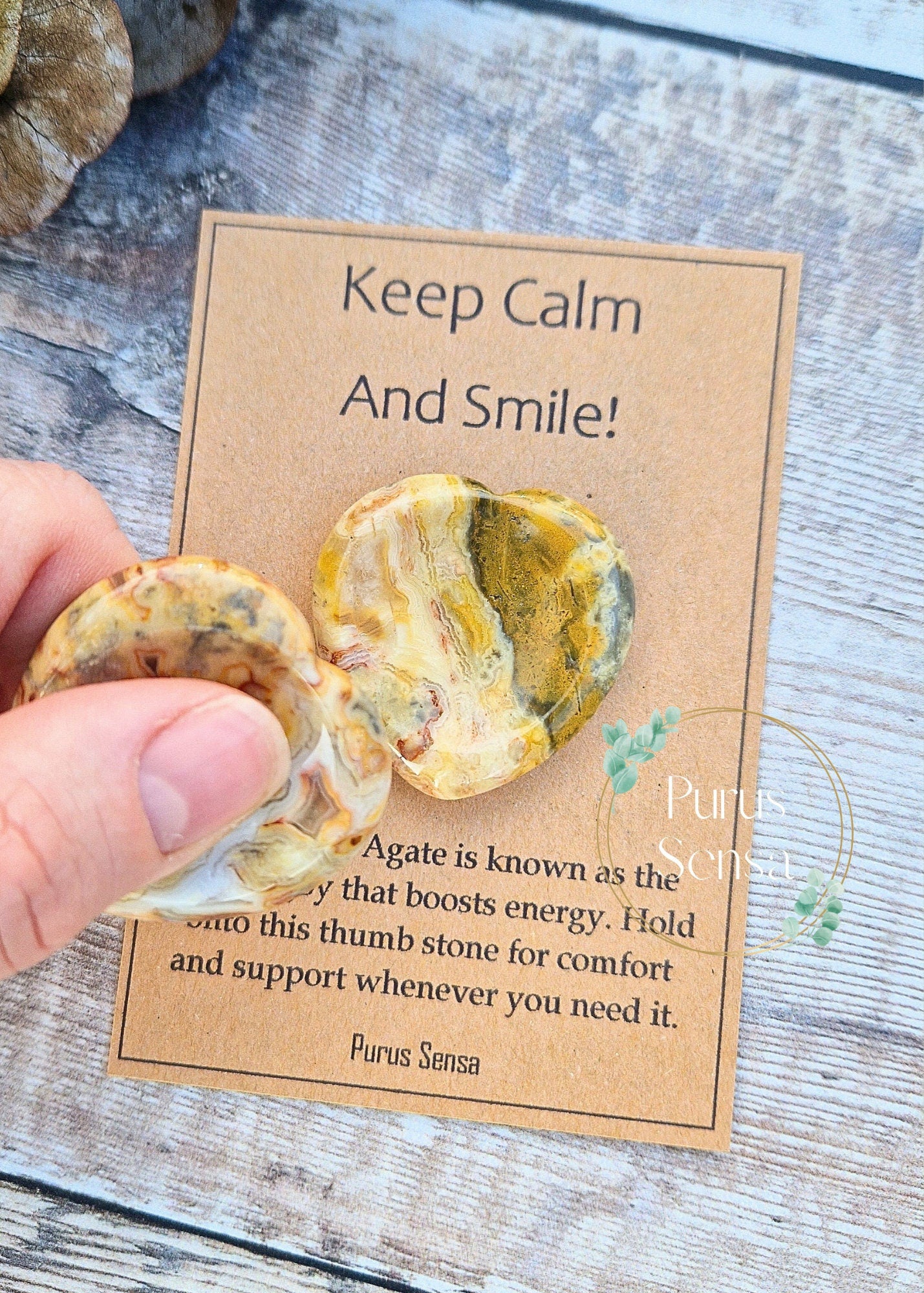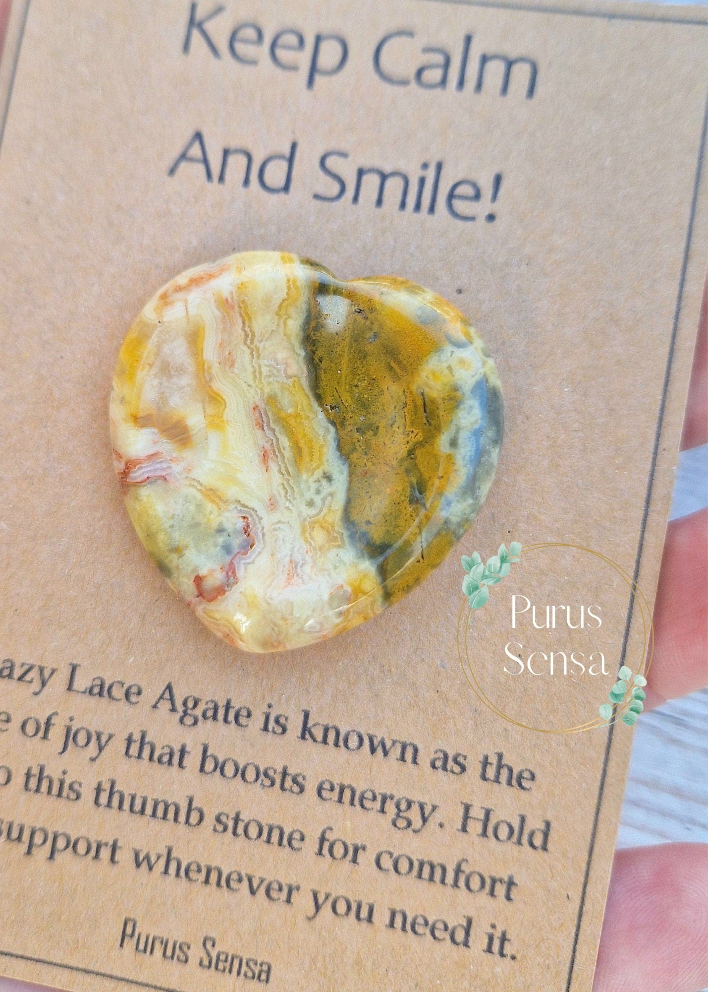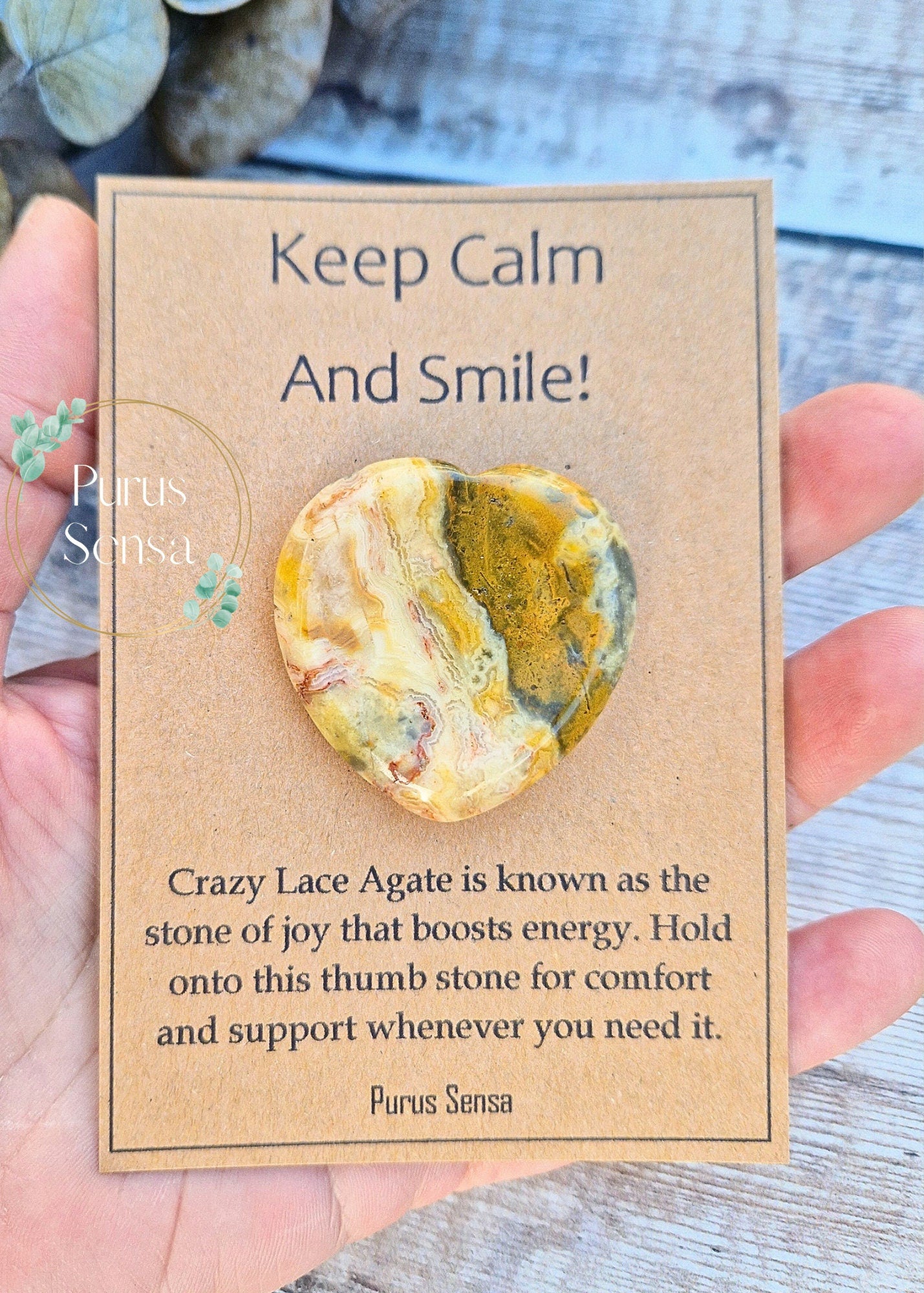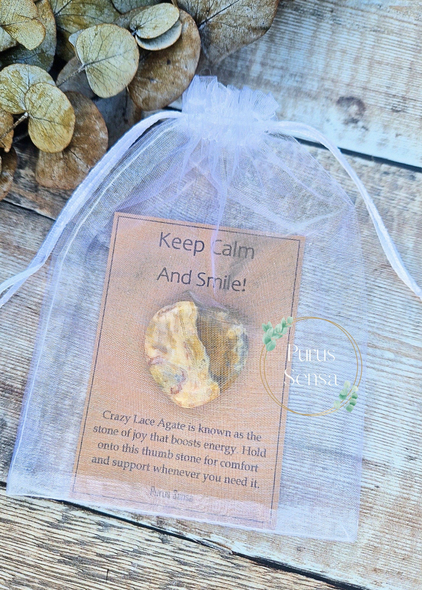 Uplifting crystal gift for support. Joy happiness gift. Crazy Lace Agate. Energy boost. Thumb stone gift. Thinking of you. Depression.
