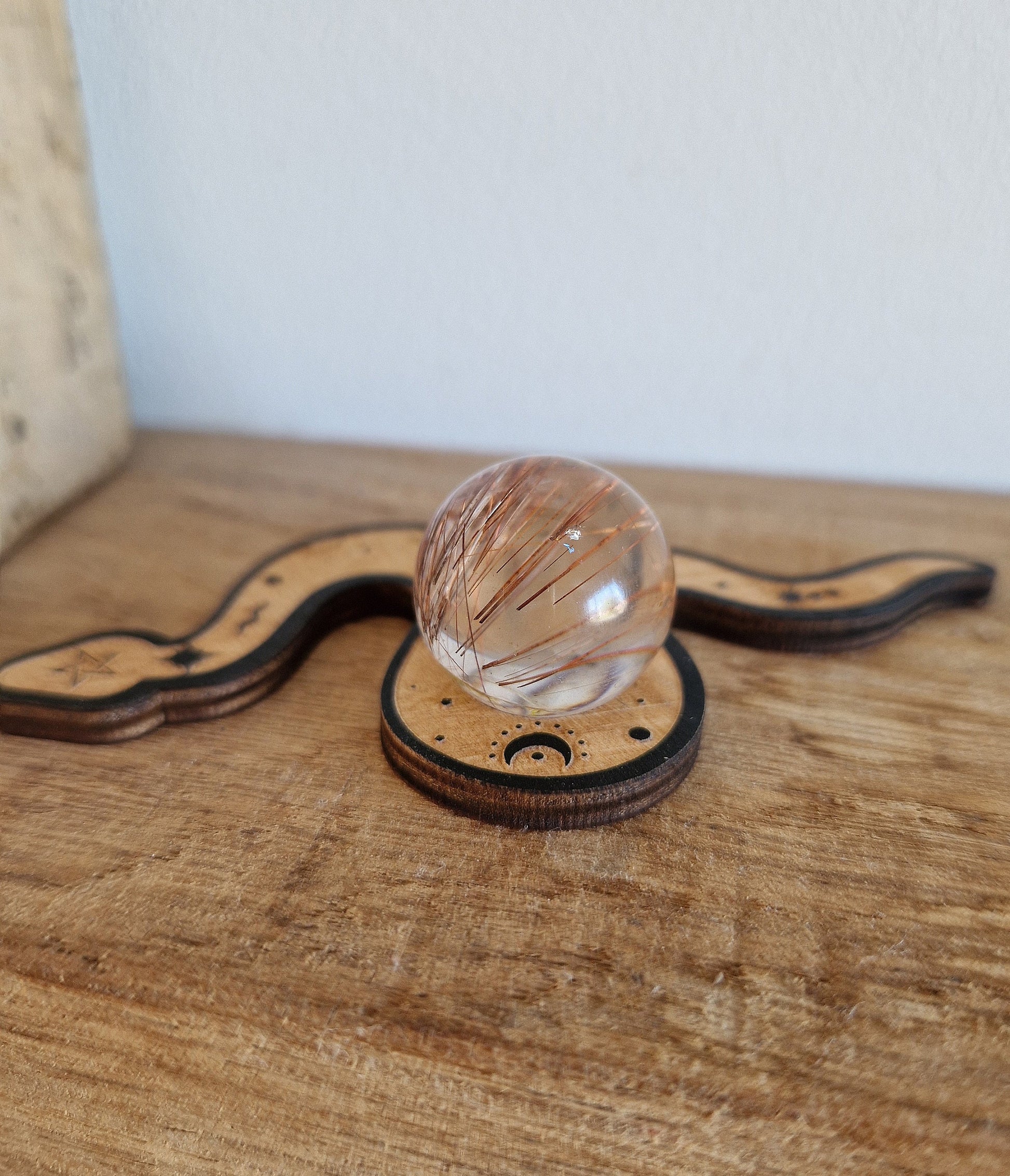 Wooden snake sphere stand. Crystal sphere stand for Mini sphere / medium sphere