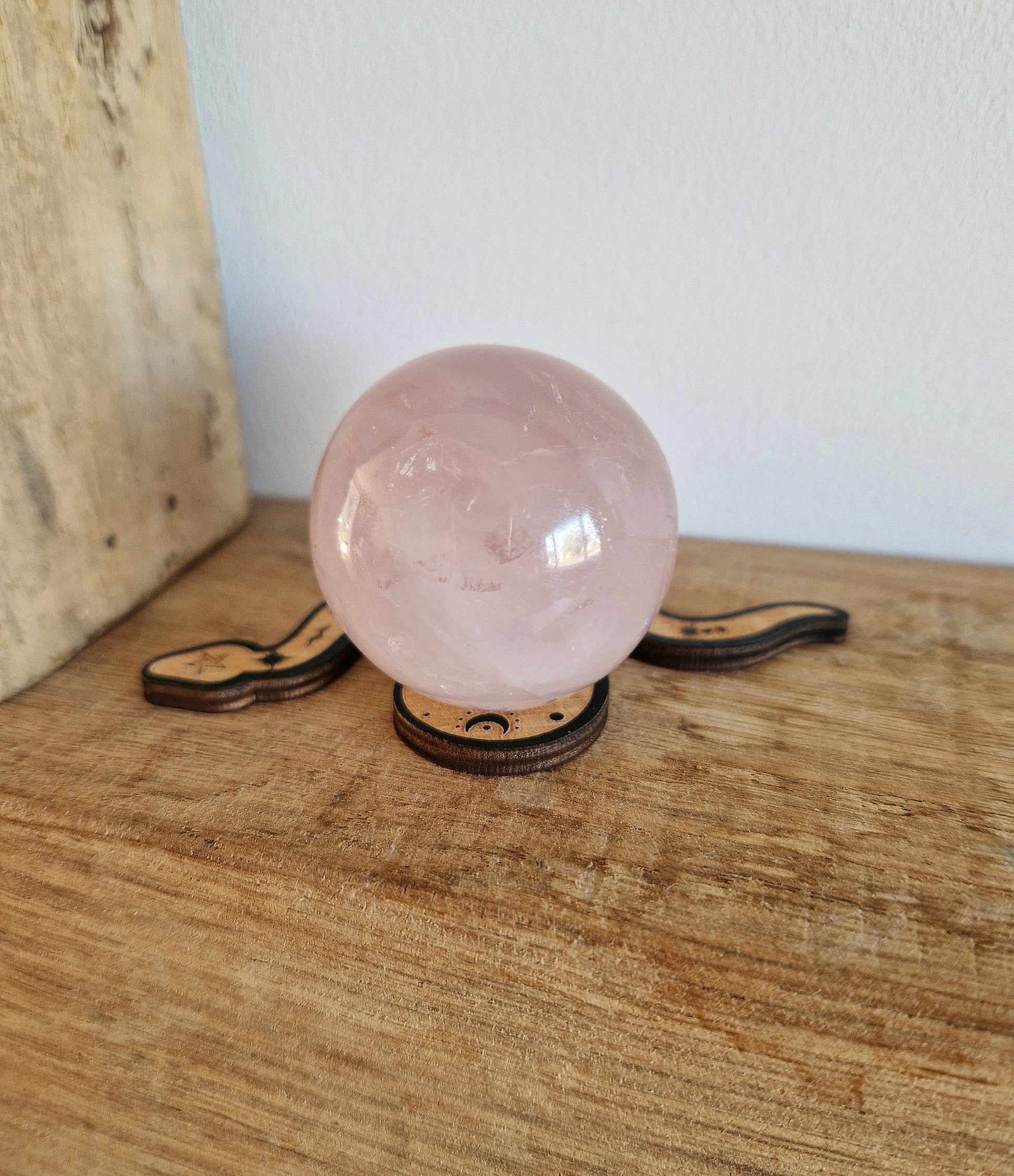 The snake measures 10cm long and 4.5cm wide. It holds anything from mini to a medium size sphere. The rose quartz sphere pictured is 35mm for reference and is not included in the sale.